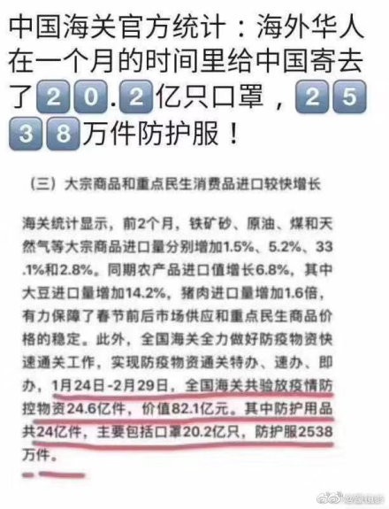 有人说了,国家危难的时候没见你们这些海外华人对祖国有多少贡献,现在外国危险了你回来了。事实真的是这样吗?在武汉、湖北、中国疫情最紧张的时候,多少海外华人、留学生到处筹集、购买口罩、消毒水,想尽一切办法寄回国内。看看下面这些新闻吧,我们不能因为中国度过难关了就忘记他们所做的贡献。
