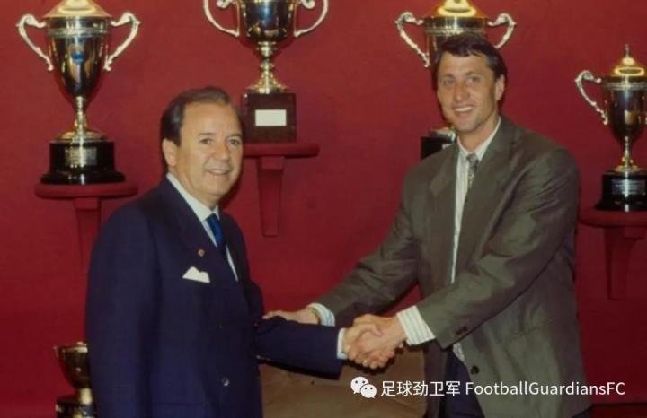尽管他在赛场场内外的成绩有目共睹,但其执政理念,特别是这两个梦想,反对的人很多。反对阵营中包括他1988年聘请,后来又被他炒掉的传奇教练克鲁伊夫(上图Josep Lluis Nunez聘请克鲁伊夫)。