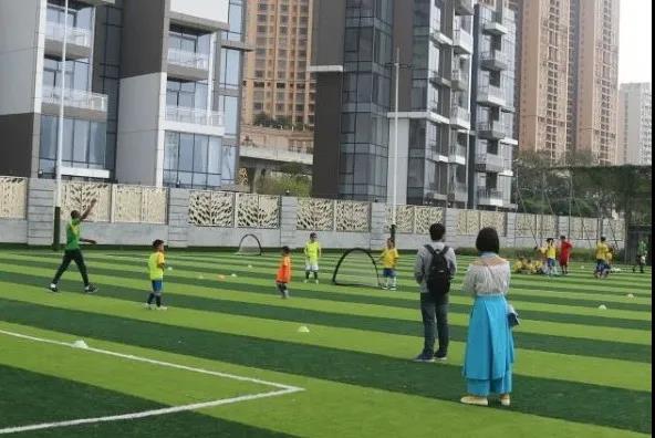 恢复训练后的第一课,不少家长在场边观看自己孩子的训练