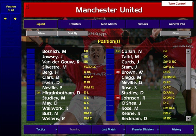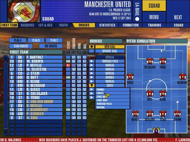 同样是1999年,体育游戏界的霸主EA当然也不甘人后,在《FIFA Soccer Manager 97》的基础上全新升级,重拳推出《Premier League Football Manager 99》(中文名《英超足球经理99》)。这代作品给人最大的印象是美术极其精美,尤其是次年推出的下一代《英超足球经理2000》,比赛直播全面升级为3D画面,感觉像是直接移植了《FIFA2000》的技术,球场的草皮和球迷看台都表现的相当华丽,而且比赛中第一次有了解说,解说员甚至会念出很多球员的名字。