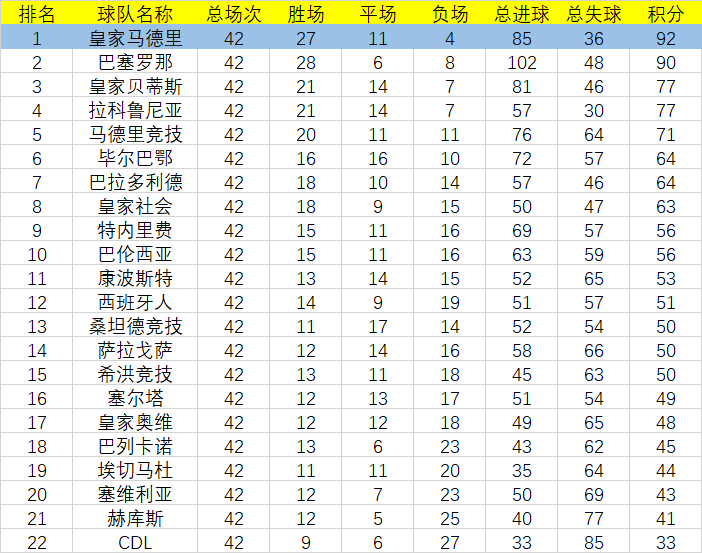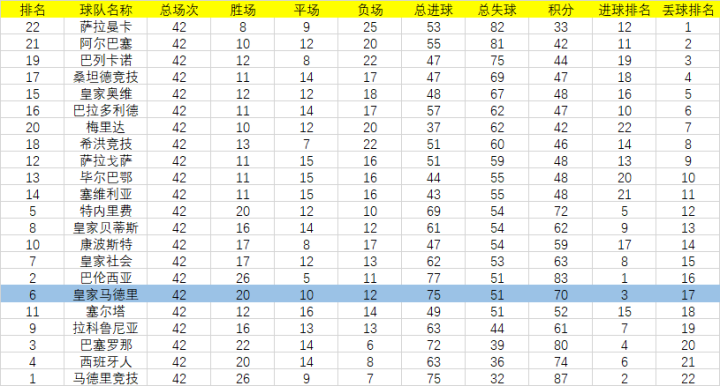 如上图所示,皇家马德里在1995~1996赛季所参加的42场西甲联赛中一共打入了75个进球,和最终夺得冠军的马德里竞技完全相同。不过相较于表现突出的进攻端,1995~1996赛季的皇马防守端表现可谓难以让人满意,他们在42场西甲联赛中一共丢了51个球,场均丢球数达到了1.21个,远远多于马德里竞技、巴塞罗那以及西班牙人。也正是因为糟糕的防守表现,皇家马德里在进攻发挥不错的情况下没有办法挤进前五。