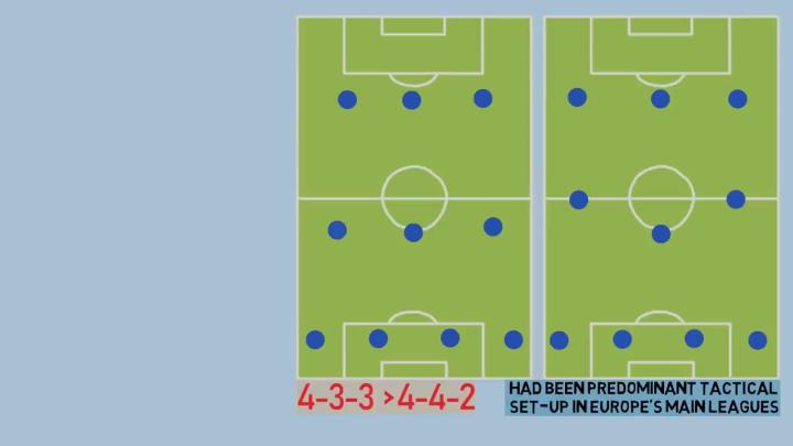 其实在穆帅采取这样的战术变化前,442阵型是欧洲各大联赛的主流阵型。而433相对于442来说有一个明显的优势。