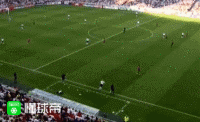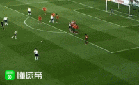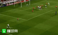 第18分钟,欧文接斯科尔斯挑传,高难度凌空吊射打在球门顶网上。