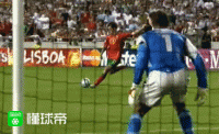 点球大战第1轮,贝克汉姆右脚射门打飞,德科主罚稳稳命中,葡萄牙1-0英格兰。