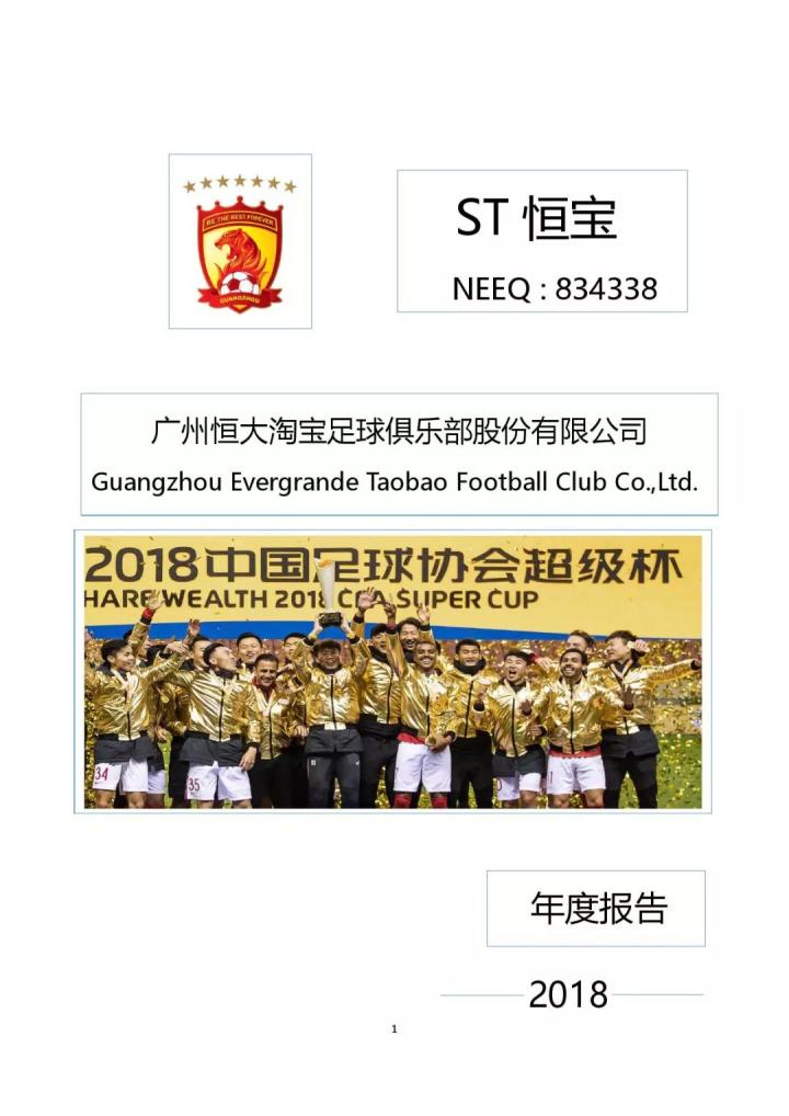 中国的职业足球俱乐部主动公布自己经营情况的很少,目前国内的霸主广州恒大淘宝俱乐部由于在新三板上市因而定期公布财报,以下是其2018年的年报数据: