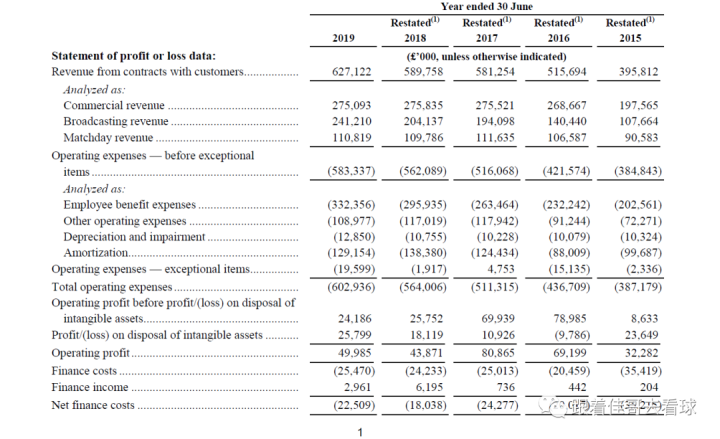 我们从上市公司曼联的2019年报来一探究竟: