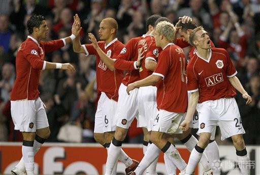 06-07欧冠曼联7-1罗马,总比分8-3晋级四强,C罗梅开二度