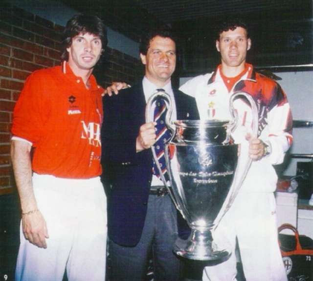 而到了93-94赛季,众志成城的米兰则再次闯入了欧冠决赛,并最终以4-0的比分重挫由克鲁伊夫掌鞭的巴萨捧杯成功。当时为“红黑军团”取得进球的分别是:马萨罗(2球)、萨维切维奇和德塞利。