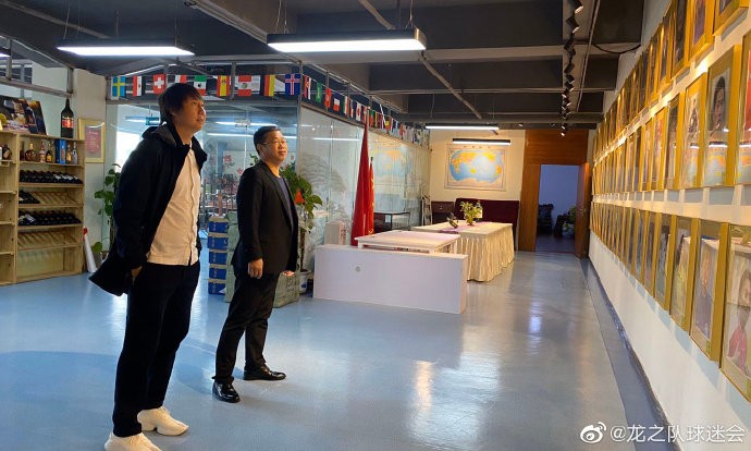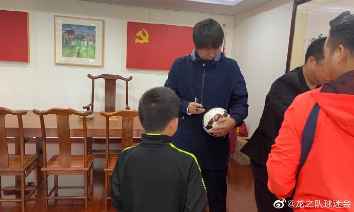 李铁受邀参观中国龙之队球迷会总部,并送上签名足球