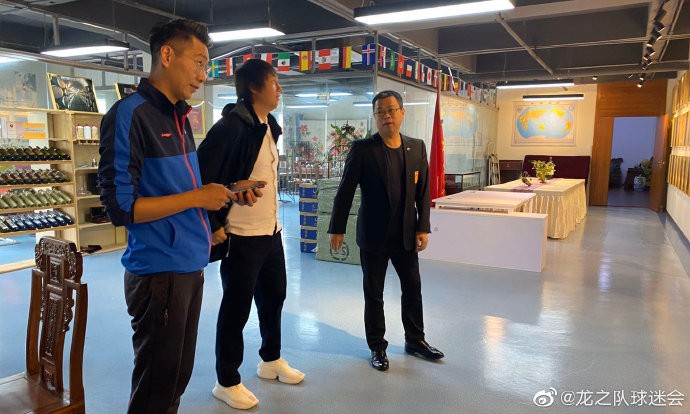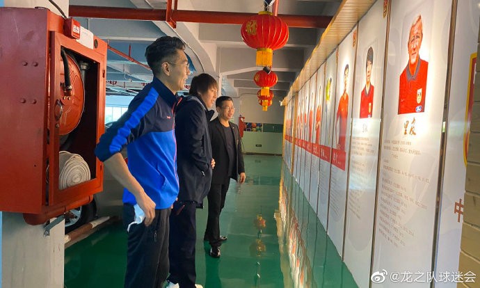 北京时间4月7日上午,国足主帅李铁在会长简满根的邀请下,来到了位于深圳的中国龙之队球迷会总部参观视察。在简会长的介绍下,李铁浏览了龙之队球迷风采墙及位于总部外墙的大幅球员画像,并参观了这里的中国足球名人堂,深切感受到了中国的球迷文化。一行人之后来到了会议室交谈,期间李铁也在足球、球迷服上签名留念,并与小球迷合影互动。