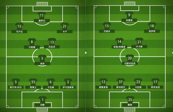 首发阵容,两边先各自献祭一个队长,切尔西这边特里累计黄牌停赛,利物浦这边杰拉德则是因伤缺阵。希丁克和贝尼特斯各自摆出433(4123),切尔西锋线由德罗巴领衔,两边分别是马卢达和卡劳,兰帕德和巴拉克突前,腰子交给水牛埃辛;而利物浦这边则是托雷斯领衔锋线,边路上是跑不死的库伊特和以色列边锋贝纳永,卢卡斯顶替杰拉德与阿隆索和小马哥坐镇中场。
