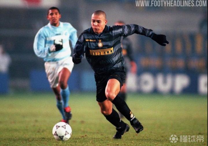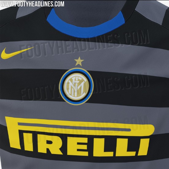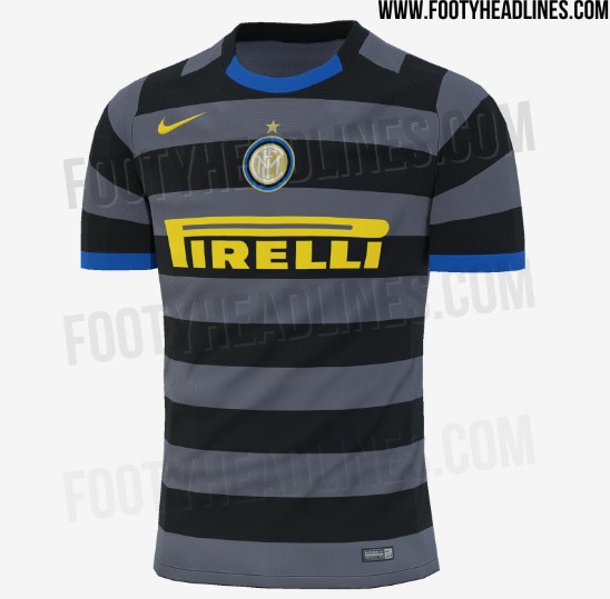 国米20-21赛季第三球衣曝光,再现97-98赛季黑灰色横条纹设计