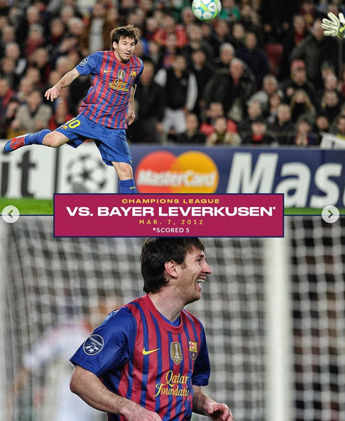当赛季1/8决赛次回合,在巴萨主场7-1横扫勒沃库森的比赛中,梅西则成为了欧冠改制以来,首位上演独中五元神迹的球员。考虑到这样的神奇表现还发生在淘汰赛中——如此成就则更加难以置信。