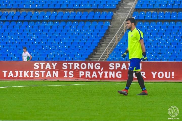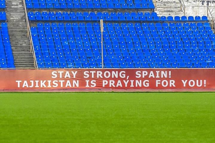 2020赛季塔吉克斯坦联赛进行到了第2轮,比赛由于疫情而空场进行。在帕米尔火车头主场对阵杜尚别83的比赛中,帕米尔国家体育场的场边广告上出现了口号,印有英文:“西班牙加油!塔吉克斯坦为你祈福!”