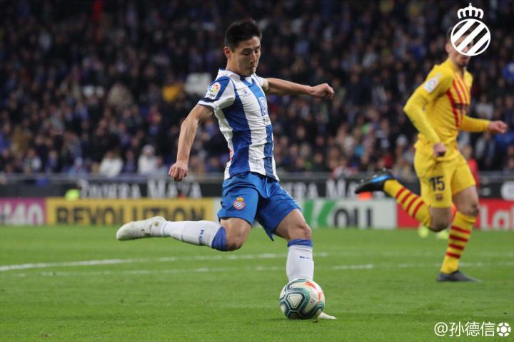 2020年1月5日,西班牙科尔内拉体育场,武磊的前插破门助西班牙人2:2“绝平”巴塞罗那,武磊因此也成为历史上第一位破门巴萨的中国球员。