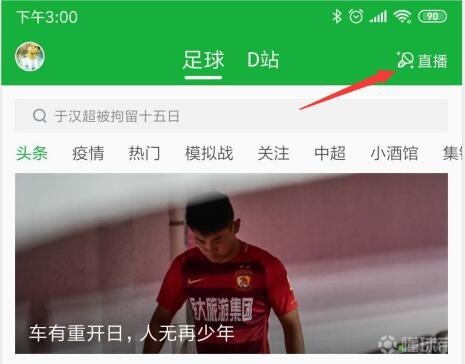 直播平台:懂球帝APP直播板块