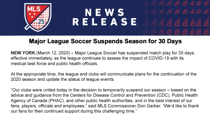 上月初,美国职业足球大联盟踏着春天的脚步重燃战火,今年恰逢MLS建立25周年庆,这本该是该联赛迄今最激动人心的一个赛季,但鉴于新冠病毒的严重蔓延,此前仅进行了2轮的常规赛已然全面停摆。