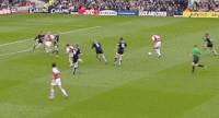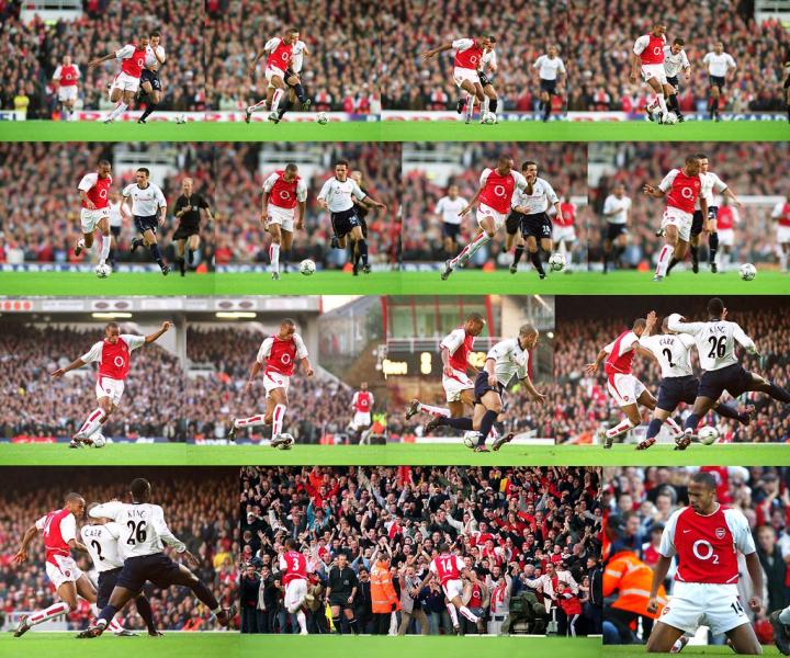比赛开场仅仅14分钟,亨利在后场卸下解围来的高空球,开始极速突进,他利用出色的盘带把热刺两名中场埃瑟林顿和小雷德克纳普远远甩在身后,面前只剩下慌乱的三名后卫,跟着亨利的步伐左摇右摆。
