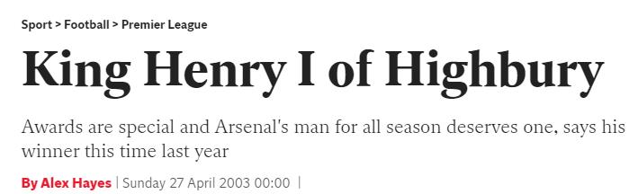 随后,亨利又为永贝里送上助攻,帮助枪手最终以3-0的比分赢下了北伦敦德比。