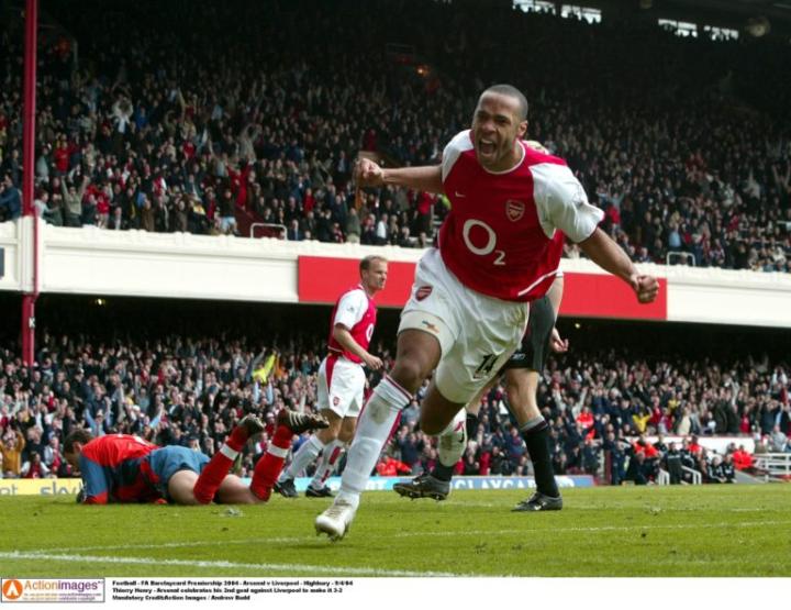 关于亨利的经典镜头,每个人都有自己的深刻印象,对阵曼联时的天外飞仙,对阵利物浦、皇马和国米时的单枪匹马,对阵查尔顿时魔术般的脚后跟破门……