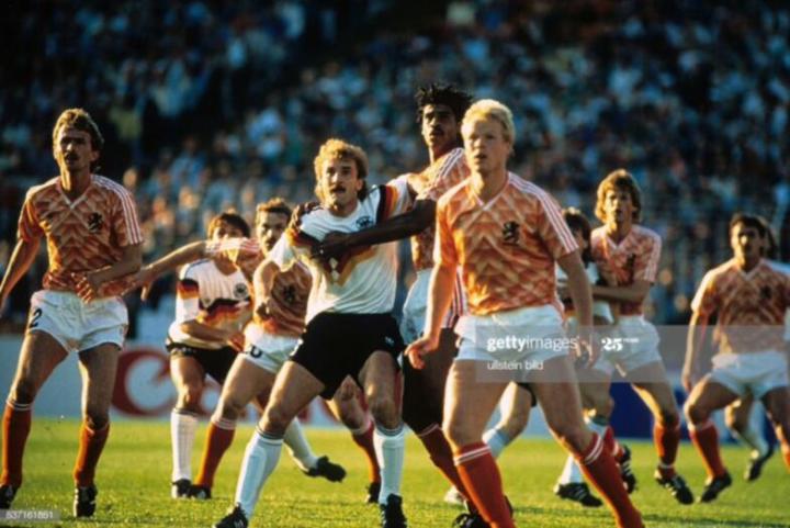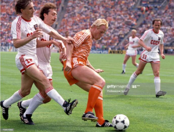 说来也巧,1988年,科曼哥哥埃尔文所在梅赫伦队获得了欧洲优胜者杯的冠军,结果兄弟两双双入选荷兰国家队参加了当年的欧锦赛,一个是中后卫,一个是边后卫。而和科曼搭档的是他曾经阿贾克斯的队友里杰卡尔德,一个身体素质无敌的全能后卫,一个是正面防守强悍,进攻能力超群的带刀后卫。那届荷兰队直接开启无敌模式,在半决赛和联邦德国队的比赛中,火药味极浓,克林斯曼在禁区内夸张倒地获得点球,马特乌斯一蹴而就,之后沃勒尔又和科曼接触后夸张倒地,幸好裁判没有被忽悠。下半场74分钟,荷兰队也获得点球,作为第一主罚手的科曼操刀扳平比分,最终荷兰凭借巴斯滕的绝杀淘汰西德队。