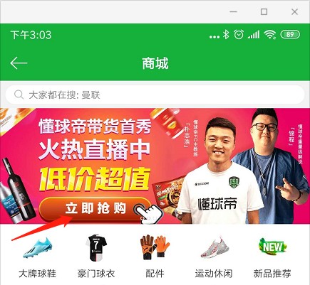 由于iOS暂未进行版本更新,只能观看直播而无法在直播间直接购买。为此我们在懂球帝商城的首屏展示了本次直播的商品专场,各位懂球帝可以移步到懂球帝商城进行购买。