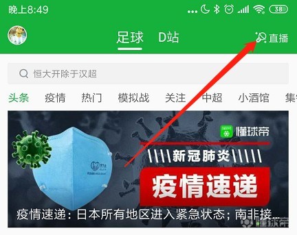 点击更新链接,安装最新版本的懂球帝。周五20:00进入直播间就可以参与我懂直播首秀了。