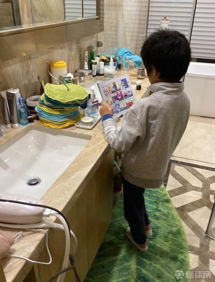 王大雷晒儿子读书照片:是真的喜欢看书