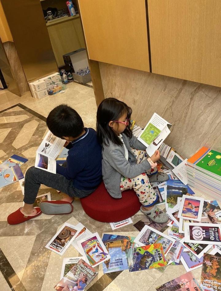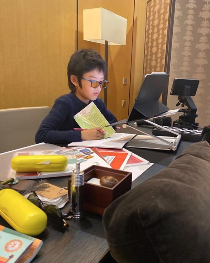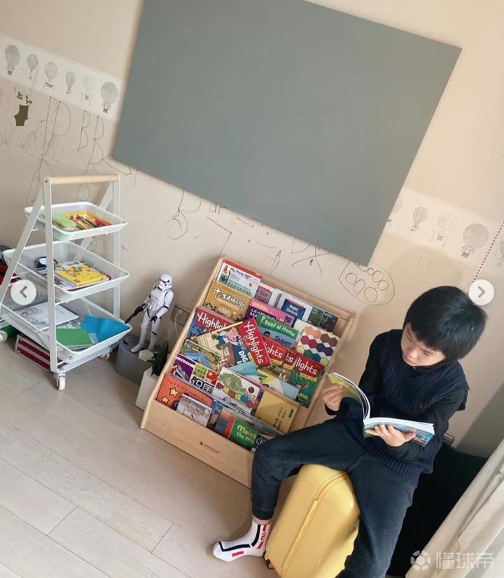 从王大雷在个人社交平台分享的图片可以看到,无论是在书房、客厅还是车内,甚至在户外,小家伙似乎无时无刻都离不开书本,捧起书来阅读的样子十分忘我。
