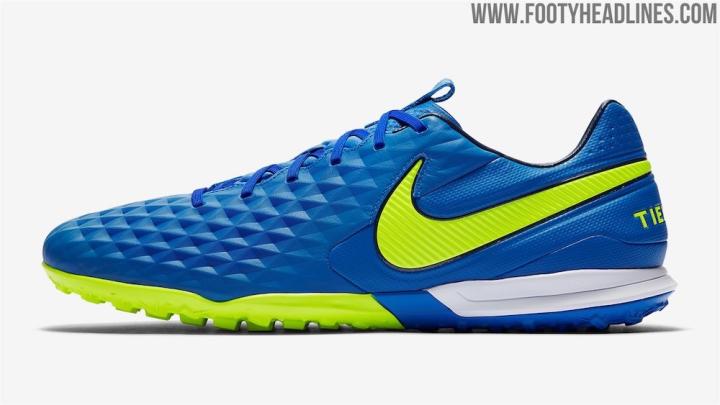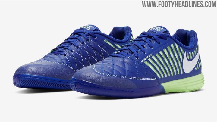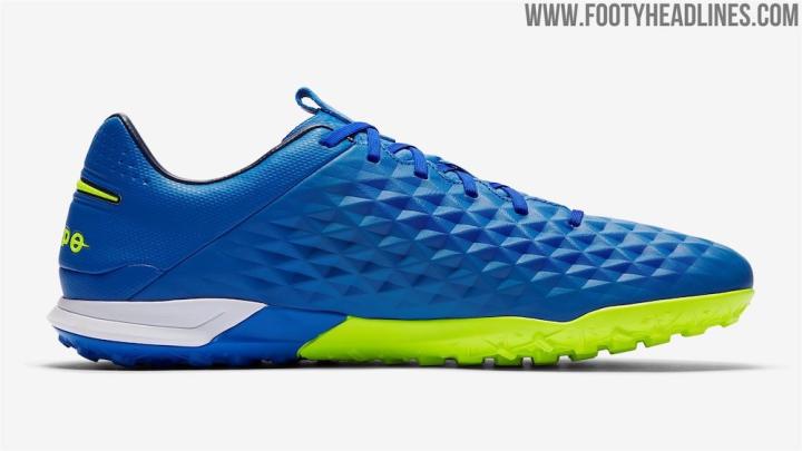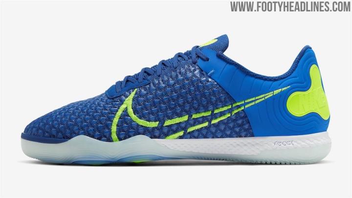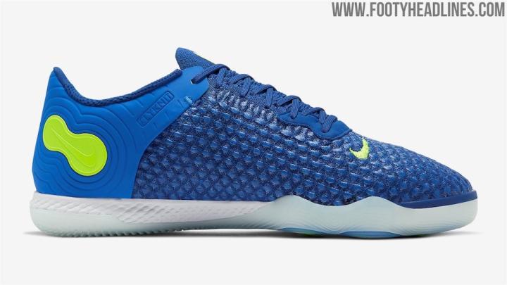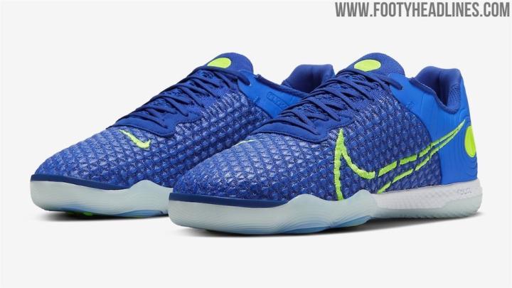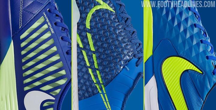 ENJOYZ足球FOOTYHEADLINE日前曝光了耐克将于本月推出的全新小场足球鞋套装的谍照,包含Lunar Gato,React Gato以及Tiempo Legend 8 Pro TF三款小场足球鞋在内的这一全新套装采用了清爽的“赛车蓝/荧光黄”这一色彩搭配。