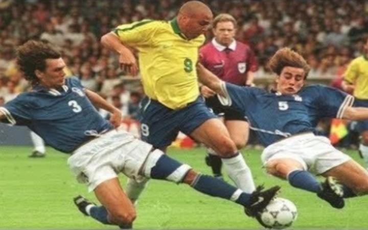那是在1997年6月8日进行的一场国际友谊赛,意大利3-3战平巴西的比赛。在那场比赛中,罗纳尔多的一次突破,迫使马尔蒂尼和卡纳瓦罗包夹铲抢,这一幕也被记者记录了下来。