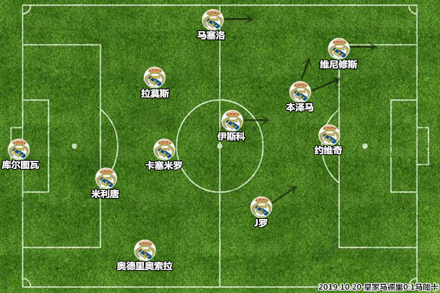 可惜的是,J罗在德甲的出色表现似乎没有赢得齐达内的认可,哥伦比亚人在回归后的处境依然非常尴尬。从赛季初依靠BBH组合打造433阵型,到“两翼尽折”后倚仗伊斯科主打442,从到西超杯期间祭出圣诞树451阵型,再到近期依靠维尼修斯打造非对称433体系,齐达内的用兵思路看似多变,实则还是沿用其第一个任期内的执教思路,中场讲究技术和平衡,锋线注重冲击和覆盖,J罗在两条线上都找不到合适的位置。