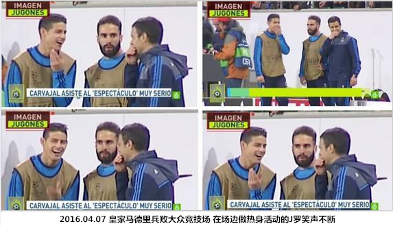 2016/17赛季中期,J罗因伤病问题与皇马医务组龃龉不断,其婚变的传闻被小报反复炒作,在国际比赛日向记者竖中指的举动也遭到了阿斯普里拉等名宿的批评,齐达内对这种行为一度“达到了忍无可忍的地步”。 在2016/17赛季做客莱加内斯的比赛中,被提前换下的J罗在回到替补席后不仅怒捶挡板,还直接对齐达内飙了粗口,唇语专家通过慢镜头回放解读了他的抱怨:“XXX,连一场完整的比赛都不让我踢完。”经历了“齐一期”的打击,J罗似乎也失去了抗争的“勇气”,当回归后再度被齐达内弃用时,他选择了“失声”。