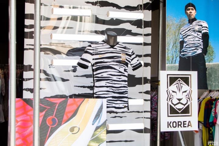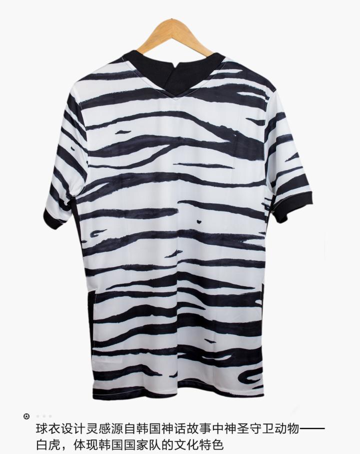 基于2018年尼日利亚国家队系列产品的成功经验,耐克在之后的产品设计中采取深耕文化的策略,与每一支国家队紧密合作,以确保产品设计能够真正地体现每支国家队的文化特色。韩国国家队全新主客场球衣,就是有一次成功的展示。客场球衣以及球袜上的白虎斑纹引人瞩目,花纹由耐克设计团队手绘原创而成。作为韩国神话故事中神圣的守卫动物,白虎象征着勇气和力量。同时辅以金属质感的金色耐克标识和队徽,呈现出奢华美感。与传统模板球衣不同,耐克的设计师制作了65种不同的球衣框架供各国选择,其中包括不同的衣领,衣袖,队徽位置等设计元素。韩国国家队全新客场球衣的衣领,就是之前模板球衣中从没有出现过的。