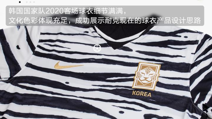 看完了中超四强全新主场球衣,我们再看看看国家队装备。近期耐克韩国国家队系列产品正式发售,主客场球衣以及各类运动休闲服饰上架,既有功能性又非常时髦。今天的赏析,我们先来看看韩国国家队2020客场球衣球迷版!