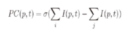 具体来说,球员i在时间t在既定位置p的影响力I是由一个二元正态分布所定义其均值为μi(t),协方差矩阵Σi(t),既定球员的速度s和角度θ。对于在时间t处于的既定位置p的球员i,影响区域的概率密度函数由标准多元正态分布定义。那么,将球员的影响力概率f定义为 在既定位置p处的归一化,由f在球员当前位置pi(t)的值表示,如方程式1所示。