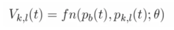 在此基础上,我们建议研究防守球队在既定的场区位置、既定的球的位置上的总影响。设VK, l(t)是球在时间t时的位置值pk,场区l在时间t; 再设pb(t)是球在时间t上的位置,我们想要研究函数fn以及它的参数θ,空间值作为球的函数。