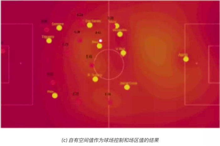 在此,我们提出了一种比赛中占据与生成有价值空间的量化方法。这里所说的直接空间占据是指为自己创造空间,而空间生成是指通过吸引对手离开所在位置、为队友创造空间。首先,我们建立一个新的参数化球场控制模型。该模型结合了移动信息、离球的距离和球员的位置等数据,为潜在的控球扫清了障碍。通过对所有球员的控制曲面进行混合,我们得到一个在球队层面上的任意时刻的潜在控球 模糊度。根据球的位置,利用前馈神经网 络,我们建立了任意场地位置的相对价值模型。通过所有这些数据(球员在球场的有效活动区域、球队的场区控制以及每个区域的相对价值),我们对每个球员的全时空动力研究构建了两个新的空间价值创造水平指标,诠释空间占据和空间生成。
