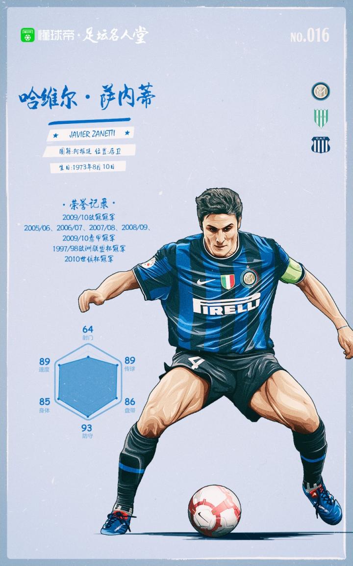 在国际米兰,萨内蒂适应过不同的教练和完全不同的技战术打法,他的位置也不断变化,从右后卫到左后卫,从中卫、后腰到右边锋,只要上场,阿根廷人就像永动机一样,永远不知疲倦,永远一拼到底。