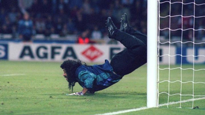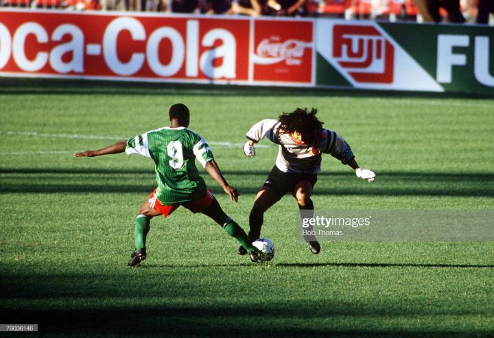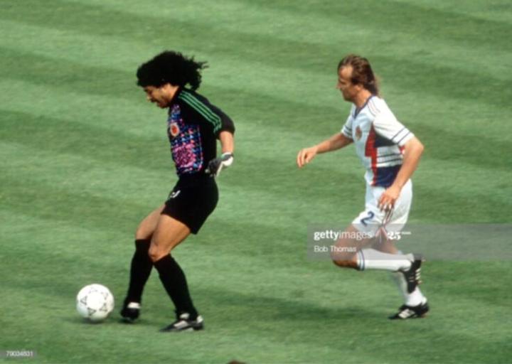 不过俗话说好事不出门,坏事传千里,伊基塔真正被全是球迷熟悉,那是在1990年世界杯。当年哥伦比亚和西德,南斯拉夫和阿联酋分在一组。在战胜阿联酋后,伊基塔就开始得瑟了,在潘采夫等杀手面前炫技。没想到南斯拉夫中场约基奇用一个头球攻破了他的球门,最后一轮生死大战面对西德队,伊基塔又在克林斯曼等人面前耍大刀,差点被马特乌斯的远距离吊门偷袭得手,追逐比赛以1比1结束,两队携手小组出线。