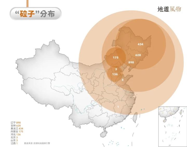 ▲“砬子”地名分布。制图/周三