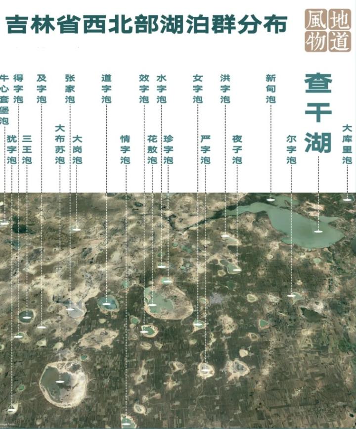 吉林省白城、松原,黑龙江省的大庆市,方圆三百公里分布着数百个“泡”或“泡子”。面积最大的是连环泡,由河沟连接20个更小的“泡”组成。
