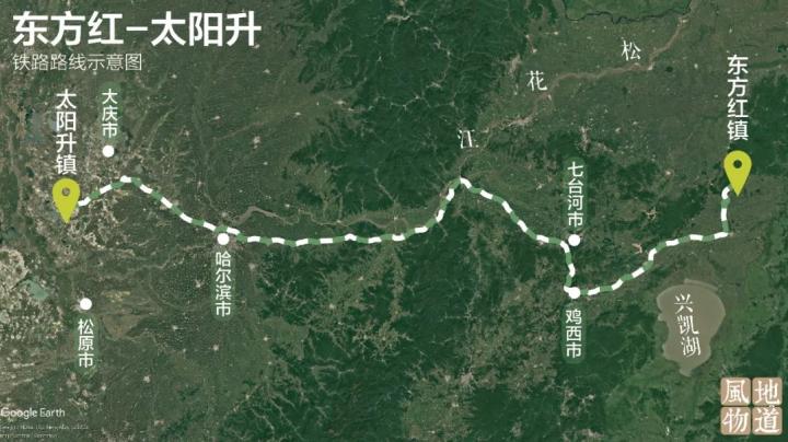 ▲ 上图:大庆市太阳升镇 。下图:从“东方红”到“太阳升”。制图/monk