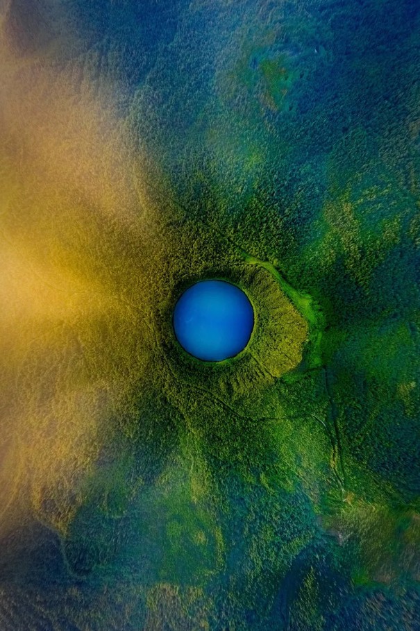 ▲坐落在吉林白山市靖宇县森林保护区内的四海龙湾,玛珥湖如同一颗璀璨的蓝宝石。摄影/王馨平