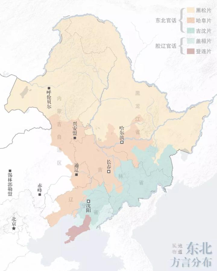 ▲东北方言分布图。制图/Paprika