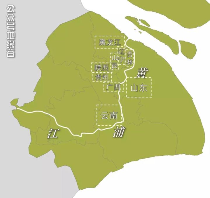 而且各个省份下属的城市与区县呈现出了一种分区分布的态势,如闵行区的许多道路以云南省的城镇命名(剑川路,金平路等),徐汇区的许多道路以广西壮族自治区的城镇命名(钦州路,苍梧路等),浦东新区的许多道路多以山东省的城镇命名(烟台路、东昌路等)等等。