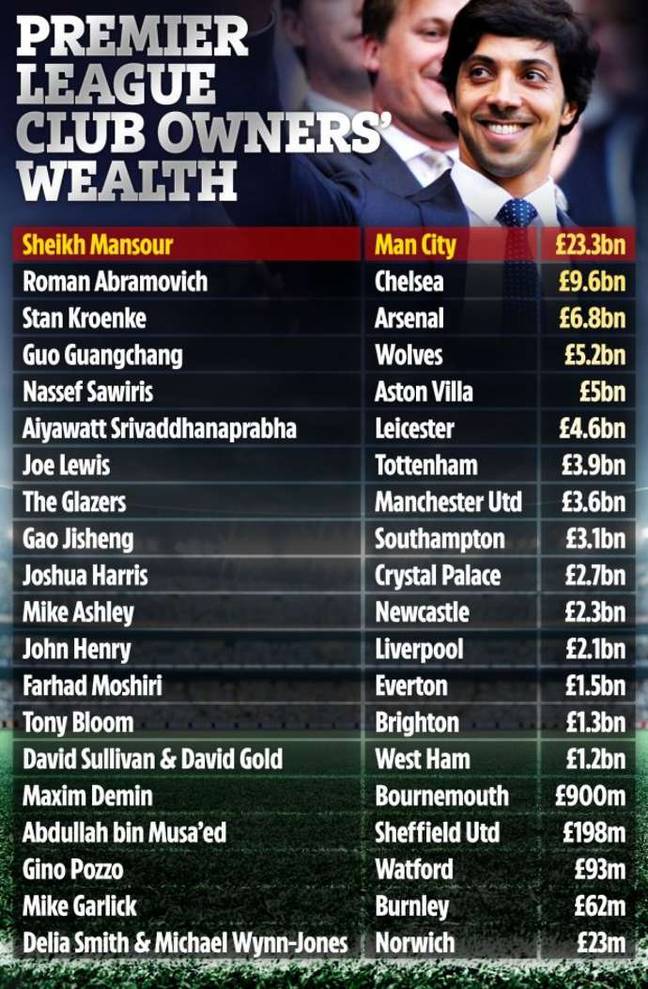 当分析英超俱乐部的财政状况时,他们老板的个人财富是球队财政健康的一个重要的指标。曼城老板曼苏尔是最富有的英超俱乐部老板,身价达到200亿美元。其他的老板同样身价不菲,他们的俱乐部也是如此。那为什么这些老板们会不惜代价地推动本赛季完赛呢?从球迷的角度来看,英超可能会立即重启的消息令人兴奋,但也令人担忧。