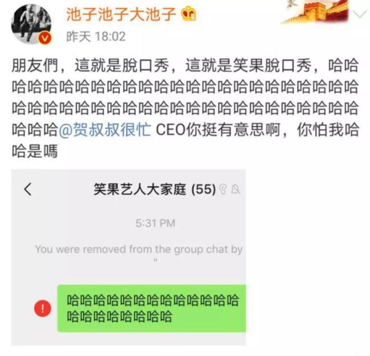 这次是他深夜晒出被领导拉黑的群截图,但脱口秀演员就这点不好,表达情绪的时候很容易让人产生误解,他"哈"的太多了,大家还以为是个梗。