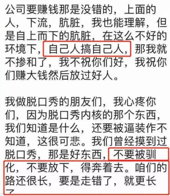 他真情实感的把公司比作shi,痛骂领导下流只为赚钱,用所谓的喜剧梦想牵着大家,丢失了脱口秀的初心。