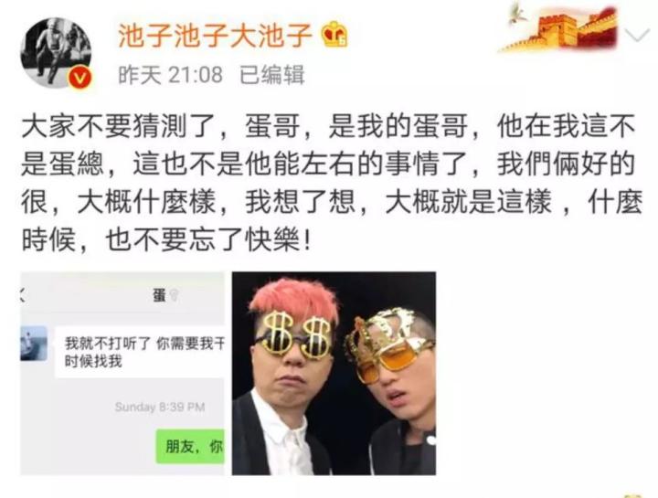 网瘾青年池子立刻又发博澄清了:"大家不要猜测了,蛋哥,是我的蛋哥,他在我这不是蛋总,这也不是他能左右的事情了,我们俩好的很!"还晒出了与李诞的聊天记录和亲密合影。